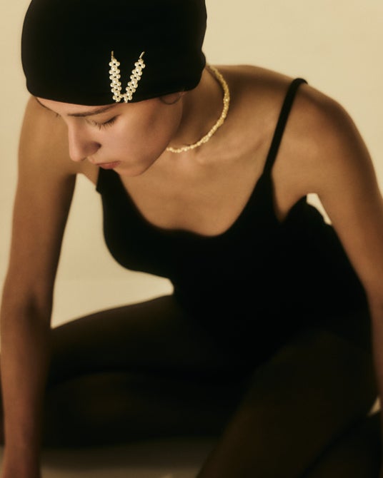 minimal turban / black ¥4,950 kaleid pearl pinset ¥4,400 kaleid pearl necklace ¥17,600
