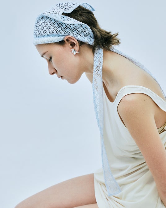 甘さとエレガンスを兼ねそなえる、繊細なレースを用いたバブーシュカ。