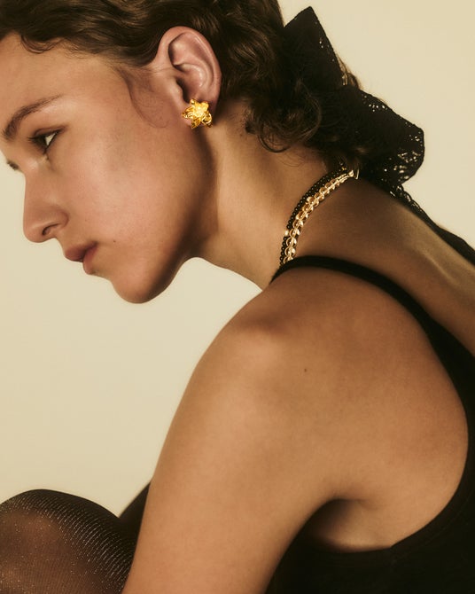 大胆なボリューム感も相まって、耳元に緊張感をもたらし、装いがシャープに整います。