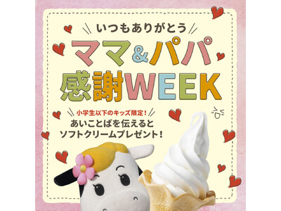 小学生6年生までのお子さまを対象として、会場でお母さん・お父さんに「ママありがとう」または「パパありがとう」と感謝の言葉を伝えると、マザー牧場から「オリジナルのメッセージカード」と「ソフトクリーム引換券」をプレゼントします(参加無料)。