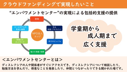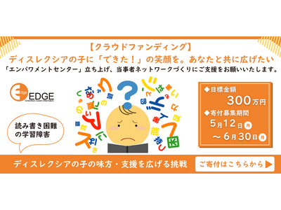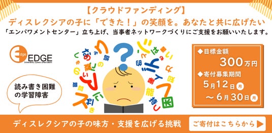 ディスレクシア当事者支援団体の認定NPO法人エッジ(東京都港区 会長:藤堂栄子)は5月12日(月)よりクラウドファンディングを開始します。