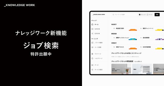 この度、営業資料や営業ノウハウの発見を支援する「ジョブ検索」機能を大幅アップデートし、正式リリースしました。また、「ジョブ検索」に関する特許出願が完了したことをお知らせいたします。