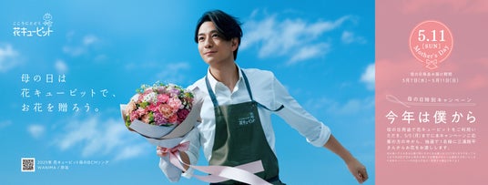 本キャンペーンは、花キューピットで母の日のお花を購入しご応募いただいた方のうち1名様に「三浦翔平さんからお花をお渡し」のほか、直筆サイン入り母の日ポスターやチェキプリントをプレゼントする企画です。