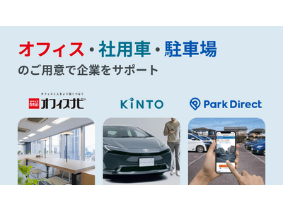 クルマのサブスクリプションサービス「KINTO ONE」などを運営する株式会社KINTO(愛知県名古屋市、代表取締役社長:小寺 信也)と、月極駐車場のオンライン契約サービス「Park Direct(パークダイレクト)」を運営する株式会社ニーリー(東京都中央区、代表取締役:佐藤 養太)、国内最大級の賃貸オフィス検索サイト「オフィスナビ」などを運営するオフィスナビ株式会社(東京都千代田区、代表取締役社長:種田 充博)は、