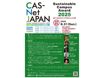一般社団法人サステイナブルキャンパス推進協議会(CAS-Net JAPAN)は、大学・高等教育機関におけるSDGsやサステイナブルキャンパス構築に係る取組事例を表彰する「サステイナブルキャンパス賞」の今年度の募集を開始いたしましたのでお知らせいたします。