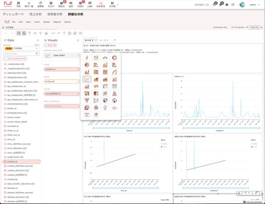 「経営管理Pro」では、「medicalforce」上の予約情報や患者データ・会計情報を初めとするすべてのデータを元に、売上分析やクロス集計を行うことが可能です。