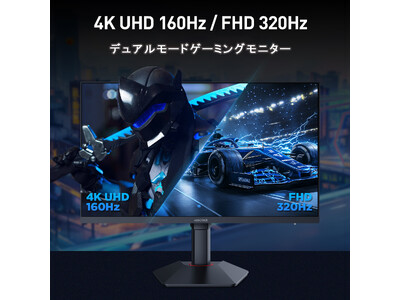 「G2741L」は2つモードが体験できます。まずは、迫力のある27インチの4K UHD解像度、リフレッシュレート160Hz、応答速度1ms(GTG)の高いゲーミング性能を誇り、圧倒的な映像美と滑らかな映像でゲームを楽しみたい方にお勧めです。次に、FHD解像度で、リフレッシュレート320Hz、初めてのゲーミングモニターにお勧めな高いゲーミング性能を備えております。そして、どちらのモデルにも高画質・高速応答に対応した IPSパネルを搭載し、美しさと高いゲーミング性能を両立しております。