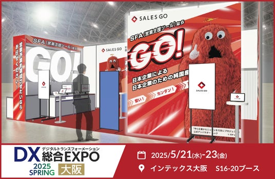 SFAとインサイドセールスで営業のデジタル化と売上アップを支援するSALES GO株式会社(所在地:東京都中央区、代表取締役社長:内山 雄輝、以下SALES GO)は、2025年5月21日(水)~23日(金)、インテックス大阪で開催される「DX 総合EXPO」内「営業DX EXPO」に出展いたします。ブースでは、最新のマーケ・営業支援ツールやノウハウ、お客様事例を多数ご紹介いたします。
