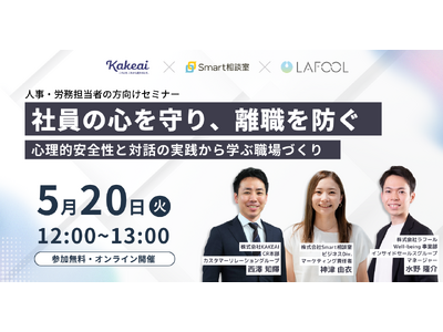 1on1ミーティングをはじめとする面談サポートシステム「Kakeai(カケアイ)」を開発・運営する株式会社KAKEAI(本社:東京都港区 代表取締役 本田英貴、以下KAKEAI)は2025年5月20日(火)にオンラインセミナー「社員の心を守り、離職を防ぐ ─ 心理的安全性と対話の実践から学ぶ職場づくり ─」を開催することをお知らせします。
