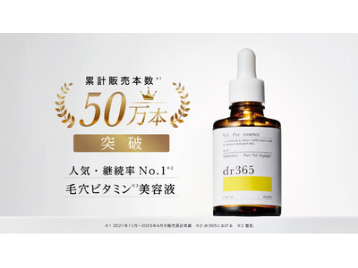株式会社dr365(所在地:東京都渋谷区渋谷)が展開するスキンケアブランド「dr365(ドクターサンロクゴ)」は、さまざまな毛穴悩みに多角的にアプローチし、継続使用率90%以上※1という高いリピート率を誇る毛穴ビタミン美容液「V.C. プレエッセンス N」の累計販売本数が50万本※2を突破したことをお知らせいたします。