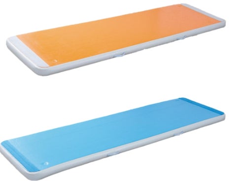 エアマットは、内部に封じ込めた空気がクッションの役割を果たすPVC製マットです。従来のウレタンマットに比べて