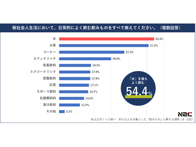 安心・安全でおいしい宅配水「クリクラ」を展開する株式会社ナック(本社:東京都新宿区、代表取締役社長:吉村 寛)は、 2025年4月に就職した新社会人を対象に、「飲みもの」に関する調査を実施しました。
