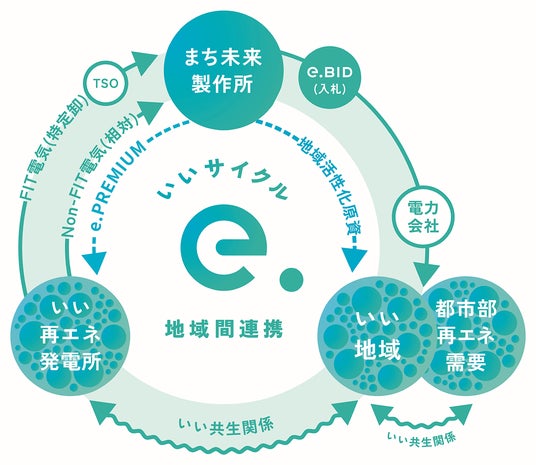 従来より取り組んでいる実質再エネ電力の取引に加え、本プロジェクトに参加していただく再エネ発電事業者を増やしながら、(株)まち未来製作所と連携したFIT電気の普及促進を図るとともに、地域活性化につながるエコシステムの構築にも取組んでいきます。