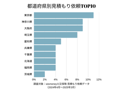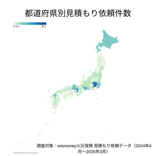 Mt.flowers株式会社(本社:東京都江東区)が提供する火災保険一括見積もりサービス「wismoney(ウィズマネ)」は、2024年4月~2025年3月にかけて寄せられた見積もり依頼データをもとに、都道府県別の依頼傾向を分析いたしました。