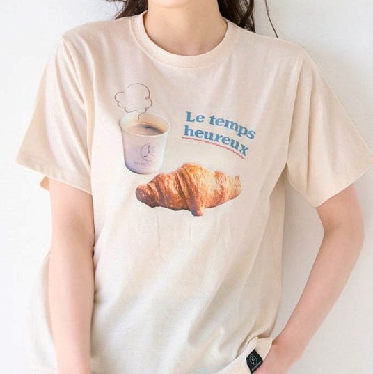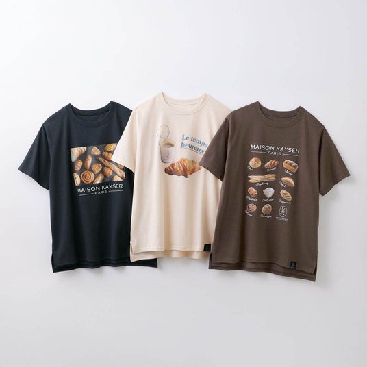 メゾンカイザーで販売しているクロワッサンやバゲットなどをモチーフに、フロント部分に大きめのプリントを施したTシャツ。柔らかなコットン素材で着心地が良く、どんなボトムスとも合わせやすいベーシックなデザインです。さりげなくメゾンカイザー愛を表現できる、ファン必見のアイテムです。