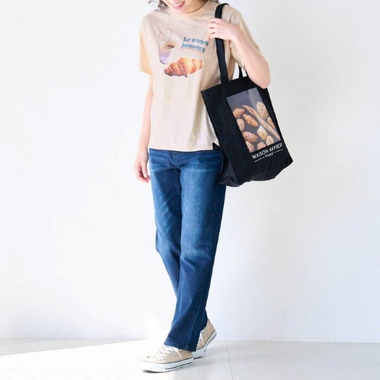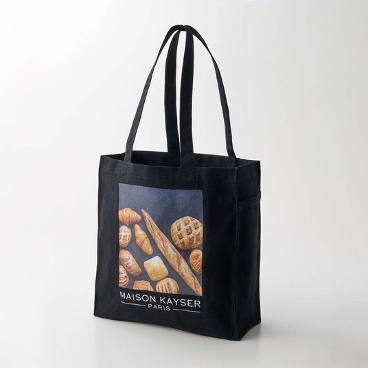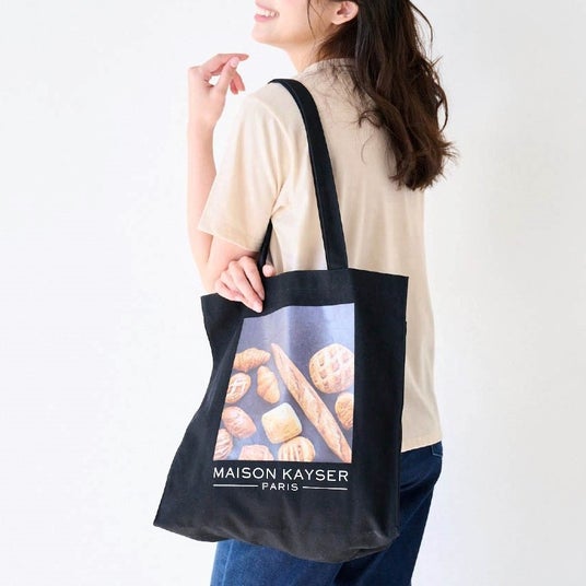 メゾンカイザーのパンをプリントした、しっかりとしたマチ付きのトートバッグ。13cmのマチ幅で、荷物がしっかり収まるので、毎日のお買い物や通勤・通学のサブバッグとしても頼りになるサイズ感です。肩掛けしやすい長さの持ち手も嬉しいポイント。