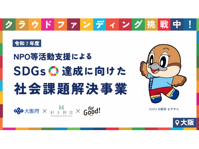 株式会社ボーダレス・ジャパン(本社:福岡県福岡市、代表取締役:田口一成)が運営するクラウドファンディングプラットフォーム「For Good」は、大阪府および一般財団法人村上財団と連携し、令和7年度「NPO等活動支援による社会課題解決事業」に参画しました。