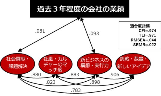 共分散構造分析(SEM)を行い、各因子がどのように仕事に対する誇りや達成感と関係しているか明らかにしました。4つの因子の中で