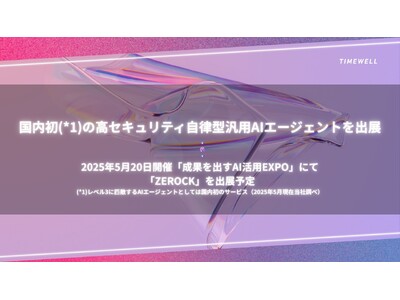 株式会社TIMEWELL(本社:神奈川県横浜市、代表取締役:濱本隆太、以下「TIMEWELL」)は、2025年5月20日に東京交通会館で開催される「成果を出すAI活用EXPO」にて、国内初(*1)となる高いセキュリティ環境下で"ゼロクリックオペレーション"を実現する自律型AIエージェント「ZEROCK」のβ版を出展します。事前のウェイティングリストでは、個人ユーザー200名以上・法人10社以上から事前登録をいただいています。
