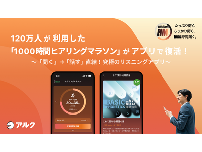 株式会社アルク(東京都品川区 代表取締役社長:天野 智之)は、アプリ1つでさまざまなジャンルの英語を、プロこだわりのカリキュラムで学習できる「1000時間ヒアリングマラソン」を一般向けにもリリースいたしました。