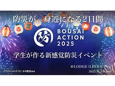 学生団体 防災me(所在地:福島県郡山市、代表:隂山弘暉)は、「防災をもっと身近に、もっと楽しく」をテーマにした体験型イベント『BOUSAI ACTION 2025』を、2025年8月31日(日)にオープンコラボレーションハブ LODGE(LINEヤフー株式会社)で開催いたします。