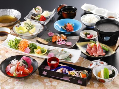 通常価格より1,000円OFFでご利用いただける特別プランをご用意しました。神戸牛のステーキや桜鯛のしゃぶしゃぶが味わえる、ちょっと贅沢なプランです。さらに、