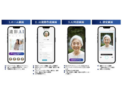 「遺影AIアプリケーション」とは、故人との対話を可能にするサービスです。現在、技術研究、検証開発を行なっております。本サービスは、遺族が故人を偲び、思い出を振り返るための新たな方法として、故人の写真や音声を学習させたAIを活用し、