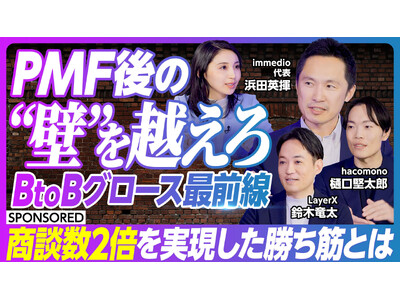 動画内容:初回のPMF後に必ず直面するのが「グロースの壁」です。急成長企業はグロースの壁を戦略と現場のオペレーションで乗り越え、高い成長率を維持しています。本動画では、急成長企業であるLayer X様の執行役員CBO 鈴木様、hacomono様のインサイドセールス責任者 樋口様をお招きし、各社のグロース戦略とオペレーションについて徹底議論をします。