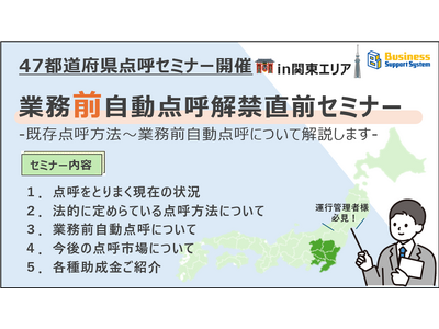 本セミナーでは、本実施解禁間近となった現在、業務前自動点呼の最新情報と点呼概要の説明に加え、各種点呼方法(遠隔点呼/業務後自動点呼/IT点呼)の要件や申請方法、