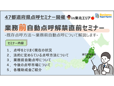 本セミナーでは、本実施解禁間近となった現在、業務前自動点呼の最新情報と点呼概要の説明に加え、各種点呼方法(遠隔点呼/業務後自動点呼/IT点呼)の要件や申請方法、