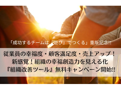株式会社遊びるど(所在地:東京都港区|代表取締役:梅村武史)は、新感覚チームビルディングを教えた書籍『成功するチームは「遊び」でつくる』の重版を記念し、本書で紹介した企業の幸福創造力を見える化した組織改善ツール「幸せ創造企業診断」を30社限定で無料で実施し、レポートとアドバイスを直接行うことを決定しました。