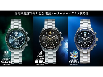 1954年(昭和29年)7月1日の創設以来、日本の平和と安全を守り続けてきた自衛隊。その節目である「70周年」を記念し、陸・海・空を象徴する三つの専門部隊をモチーフにした特別な電波ソーラー腕時計が誕生しました。