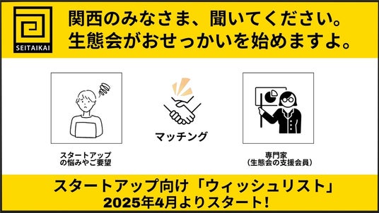 NPO法人生態会(所在地:大阪市北区、理事長:アレン・マイナー)は、2025年4月より、スタートアップを対象にした新サービス「ウィッシュリスト」を開始しました。本サービスは、生態会のスタートアップ会員または生態会が過去に取材をしたスタートアップを対象に、企業が抱える具体的な課題に応じて専門家や支援者とマッチングし、困りごとをサポート・解決する仕組みです。