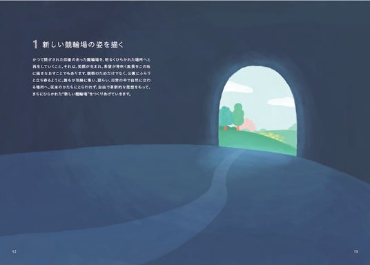 本ビジョンブックでは、“ひらかれた競輪場”をキーワードに、高松競輪場再整備プロジェクトにおける「9つのビジョン」を提示しています。今後は、開業までの間に定期的な情報発信を行いながら、地域の日常に根ざした誰もが安心して過ごせる競輪場の実現を目指して、高松競輪場再整備プロジェクトを推進してまいります。