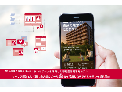 株式会社 D2C(本社:東京都港区、代表取締役社長:高田 了、以下D2C)及び株式会社D2C R(本社:東京都港区、代表取締役社長:豊永 雅史、以下D2C R)は、株式会社NTTドコモ(本社:東京都千代田区、代表取締役社長:前田義晃、以下ドコモ)が保有するデータとメディアを活用した「不動産売買予兆モデル×デジタルチラシ(メッセージS)」(※1)の提供を開始いたしました。