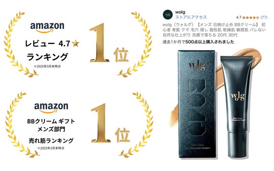 2024年2月に販売を開始した「WOLG BBクリーム」は、販売開始からわずか1年でAmazonのBBクリームギフトランキングで見事第1位(2025年3月末日)を獲得することができました。