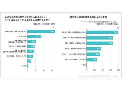 留学奨学金プラットフォームを運営する株式会社RyuLogと海外大生就活支援を提供する株式会社One Terraceは、海外留学に関心のある18歳以上の日本人学生に対して、「海外留学に関するアンケート」を共同実施しました。