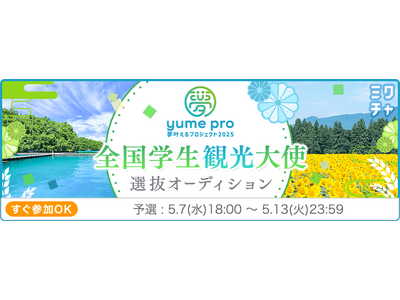 「全国学生観光大使」は、学生の力で地域観光を盛り上げることを目的としたプロジェクトで、全国から集まった学生たちが、自らの発信力や表現力を活かして観光の魅力を伝える、日本最大級の学生向け観光PRイベントです。本イベントは、「夢を持つすべての人を応援する」をコンセプトに開催されるYUMEPRO2025の一環として実施されており、最終審査で選ばれたグランプリ受賞者1名が「全国学生観光大使」として活動します。