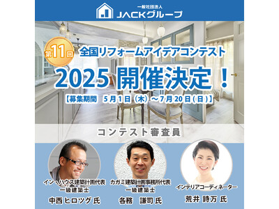 リフォーム事業者の経営支援を行う一般社団法人Jackグループ(所在地:岐阜県高山市、代表理事:蜘手健介)は、リフォーム業界のさらなる活性化を目的として、「第11回全国リフォームアイデアコンテスト」を開催いたします。応募期間は2025年5月1日(木)から7月20日(日)までです。