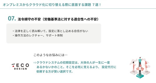 TECO Designは、導入支援をはじめとして、悩める労務の皆さまをあらゆる手法でサポートいたします。