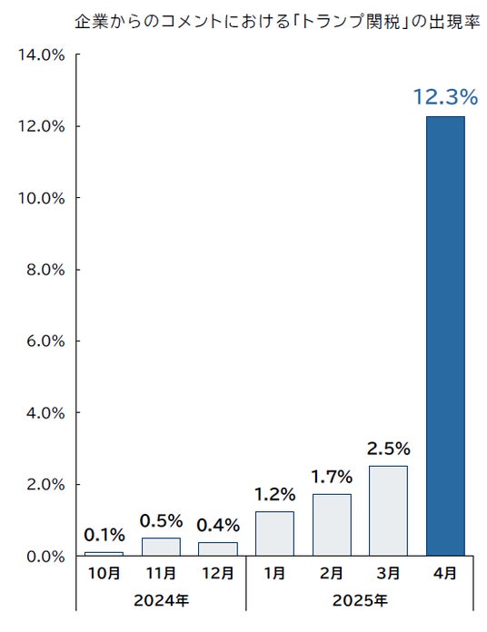 [1] 各月の企業から寄せられたコメントのうち「トランプ」または「関税」を含んだコメントを対象に出現率を算出した