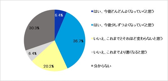 「はい」の回答が4割強(43.1%)、「いいえ」が2割強(26.6%)となり、医師が働く環境が良くなっていくと考えている医学生が多い結果となった。一方「わからない」という回答も約3割(30.3%)あった。