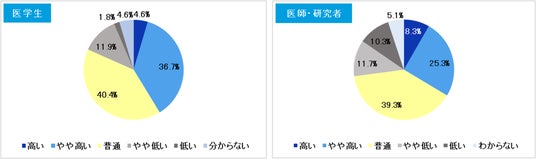 医学生の4割強が日本の医学研究レベルを「高い」と回答 ―現職医師より高く評価 …(Q9)「高い(高い+やや高い)」が4割強(41.3%)となり、2024年12月に当財団より配信した「医師・研究者へのアンケート調査」の、「高い(高い+やや高い)」(33.6%)を上回った。
