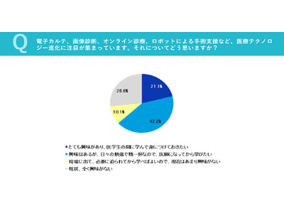医療テクノロジーの進化に6割強の医学生が「興味がある」と回答 …(Q14)「興味がある」という回答が6割強(63.3%)となり、医療テクノロジーに対する高い興味がうかがえる結果となった。