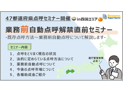 本セミナーでは、本実施解禁間近となった現在、業務前自動点呼の最新情報と点呼概要の説明に加え、各種点呼方法(遠隔点呼/業務後自動点呼/IT点呼)の要件や申請方法、
