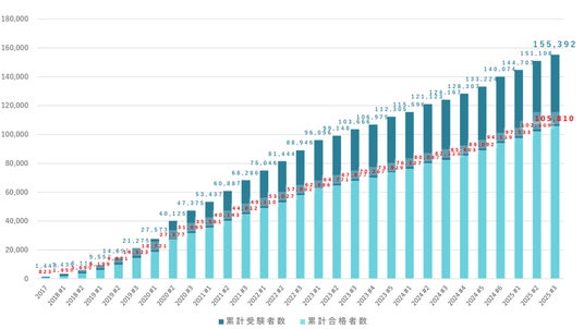これにより、G検定の累計受験者数は155,392名、累計合格者数は105,810名になりました。