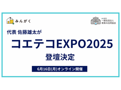 株式会社みんがく(本社:東京都新宿区)は、代表取締役の佐藤雄太が、兼任する一般社団法人 教育AI活用協会(本社:東京都港区)の代表理事として、プログラミング教育に特化したオンラインイベント「コエテコEXPO2025」への登壇が決定したことをお知らせいたします。