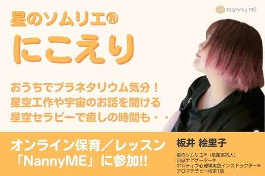 オンライン保育/レッスン「NannyME」(運営:株式会社七色、代表取締役CEO:佐々木綾香)は、星のソムリエ(R)(星空案内人)のにこえり氏を星空のNanny(講師)として迎えました。