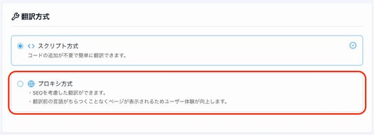 従来のブラウザ上でのみ翻訳をするスクリプト翻訳方式に加え、プロキシ型翻訳に対応しました。