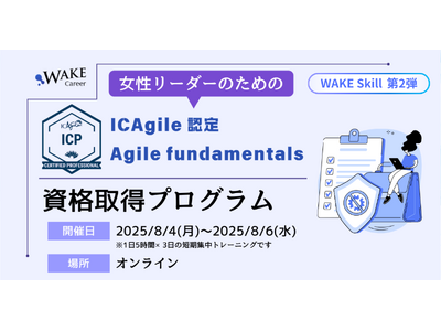 「女性のためのアジャイルファンダメンタルズ資格取得プログラム」は、当社が展開する新シリーズ「WAKE Skill」の第2弾となります。